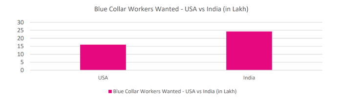 - Roughly 80% of jobs in India are Blue-collar jobs [5].